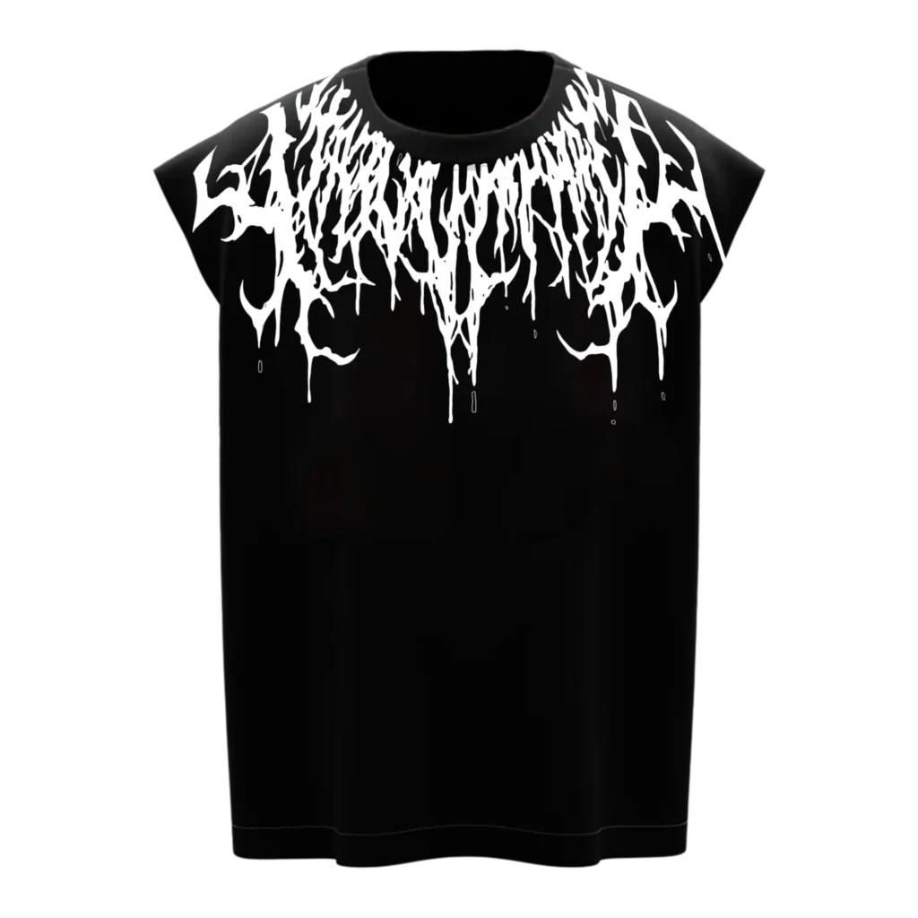 ₹999.00Original price was: ₹999.00.₹499.00Current price is: ₹499.00.Black Drip Metal Oversized Gym vest – Urban Grunge Edition