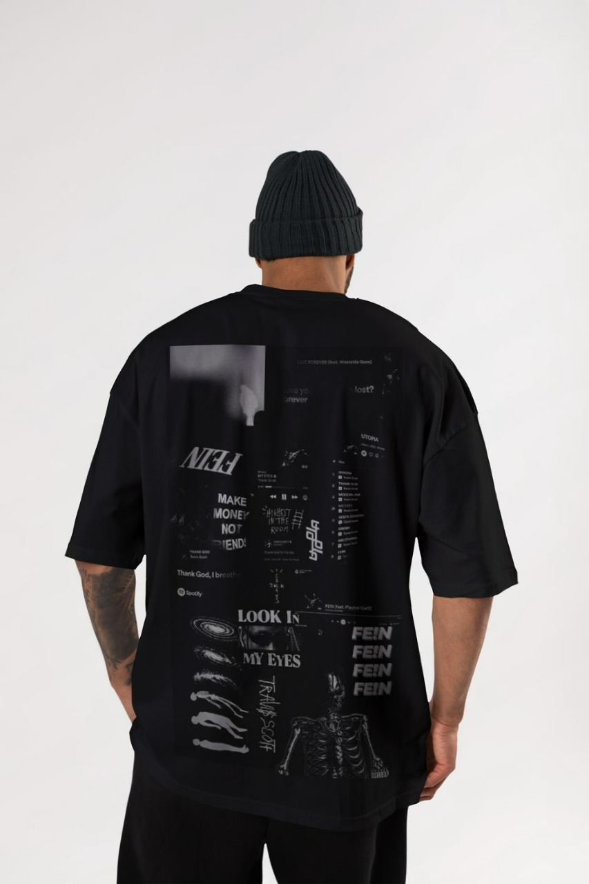 Step into the world of La Flame with the Travis Scott Utopia Lyrics Graphic T-Shirt. Designed on a premium black cotton base, this tee showcases a striking collage of lyrics, motifs, and visuals that reflect Travis Scott’s Utopia era. With its oversized streetwear fit, it’s perfect for concerts, casual styling, or festival-ready looks.